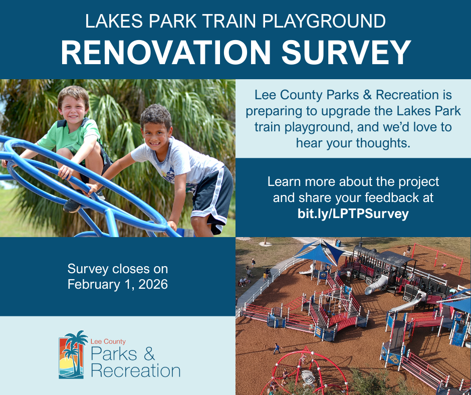 Lakes Regional Park began as a man-made area where rock was quarried during the 1960's. The water comes from groundwater influx, surface water run-off and rainfall. The depth varies from a few inches to over 20 feet. It covers 158 acres of the 279 acre facility. It was purchased by the County in 1978. In 1982 ground was broken and it was developed for recreational use with the official "Grand Opening" on April 21, 1984. The basic facility has remained relatively unchanged since then with a few exceptions. In 1991 the "Fragrance Garden" was introduced and has grown from a small area of fragrant herbs, flowers and plants to a botanical type status with wide variety of plants, trees, shrubs and ground cover. In addition to this a "Memory Lane" was also started. This is achieved by monetary donations which dedicate Trees, shrubs, plants or benches to the memory of loved ones that are designated by plaques. The Lakes Regional Park Botanic Garden is in the conceptual phase. Fred Johnson, former Planning Manager for Lee County Parks, and Greg Diserio, Partner at David Jones Jr. and Associates, collaborated on the project. A presentation meeting was held on March 19th at Lakes Park. The concept plan will be available to view soon. In 1992 the re-alignment of Gladiolus Drive brought changes to the entrance of the facility and initiated the process of exotic vegetation removal and the replanting of native species, which continues today. In 1995 the "Miniature Railroad" opened for business. This is a scale model railroad that offers a 15 minute ride through the northern areas of the park. The ride runs beside the lake, through a tunnel and past several displays, such as scale villages, towns and natural areas. In 2004, the Lakes Park Enrichment Foundation a 501.C(3) non for profit group was formed. This organization is organized by Lee County business leaders along with dedicated citizens who recognize Lakes Regional Park as an extremely important green area in Lee County. This foundation is dedicated to helping restore Lakes Regional Park to a native Florida wildlife environment through assisting Lee County Parks & Recreation with the implementation of its Master Plan. The plan includes themed areas of native vegetation, additional meandering boardwalks, paths and nature trails through the Lakes preserve and new park amenities. In 2014, three outdoor total body fitness stations were added to offer dozens of exercise options, from basic stretching and stair steps to more strenuous pull-ups and squats. Two more stations will be added along the biking and jogging trail once donations are secured. This equipment also includes fitness guides for beginners and advanced athletes, suggested daily workout schedules and accompanying videos that users can view from a smart phone. Overall, the future restoration and enhancements will create an even more attractive wildlife environment for the community to enjoy. If you are interested in being a member of this group to help restore and preserve this beautiful park please call (239) 533-7575 (ext. 5) or visit Lakes Park Enrichment Foundation.